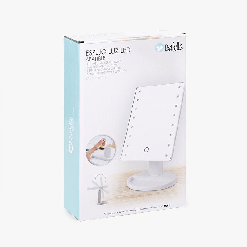 Espejo leds 16 puntos luz. Ilumina tu belleza con estilo y practicidad. Este espejo con luz LED abatible es el accesorio perfecto para tu rutina diaria de maquillaje o cuidado personal. Compacto, funcional y elegante, está diseñado para ofrecerte una iluminación precisa en cualquier momento y lugar. Iluminación LED: Proporciona una luz uniforme y brillante, ideal para maquillaje, depilación o cualquier rutina de cuidado facial. Diseño abatible: Permite ajustar el ángulo según tus necesidades, garantizando una visión cómoda y precisa. Tamaño práctico, es lo suficientemente grande para un uso cómodo, pero compacto para colocarlo en cualquier espacio. Funcionamiento a baterías: Requiere 4 pilas AA (no incluidas), lo que lo hace portátil y libre de cables. El espejo cuenta con una base sólida para garantizar seguridad al usarlo. Fácil de usar: Botón táctil para encender y apagar la luz con un simple toque. Diseño moderno: Perfecto para cualquier estilo de decoración en tu tocador o baño. Uso personal en el hogar.