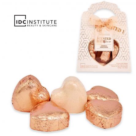 Pack de 5 bombas de baño en forma de corazón con aroma a naranja y madera de cedro.