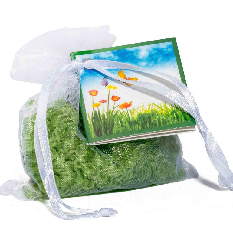 Perlas aromáticas presentadas en un saquito de tul. La tecnología EVA permite que la fragancia en forma de perlas, se libere gradualmente durante muchísimo tiempo.