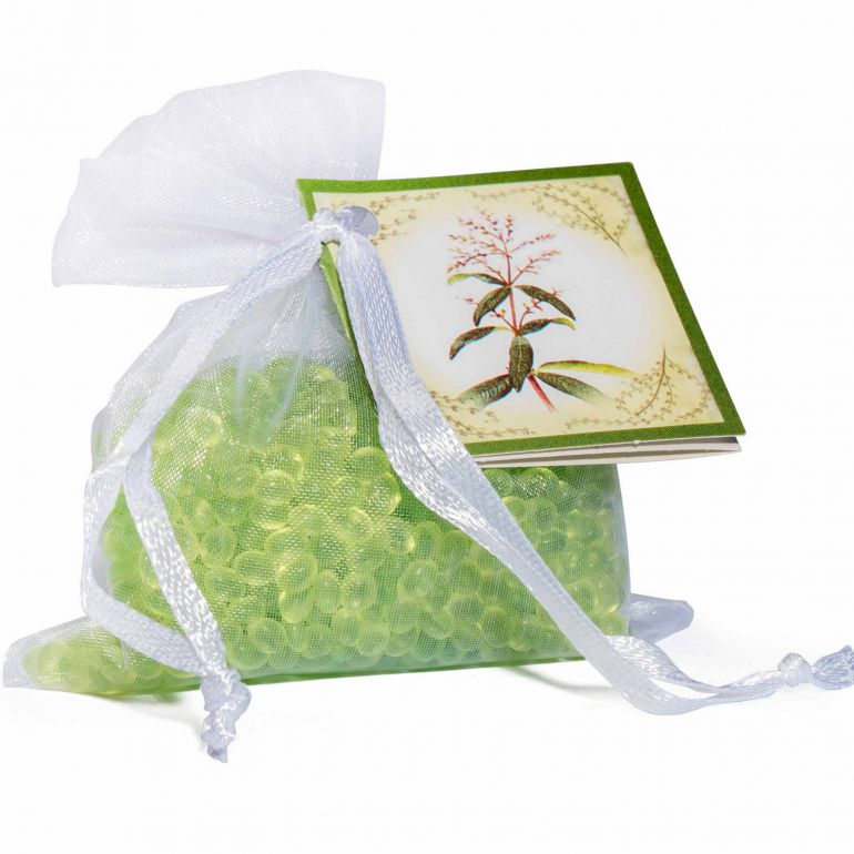 Perlas aromáticas presentadas en un saquito de tul. La tecnología EVA permite que la fragancia en forma de perlas, se libere gradualmente durante muchísimo tiempo.