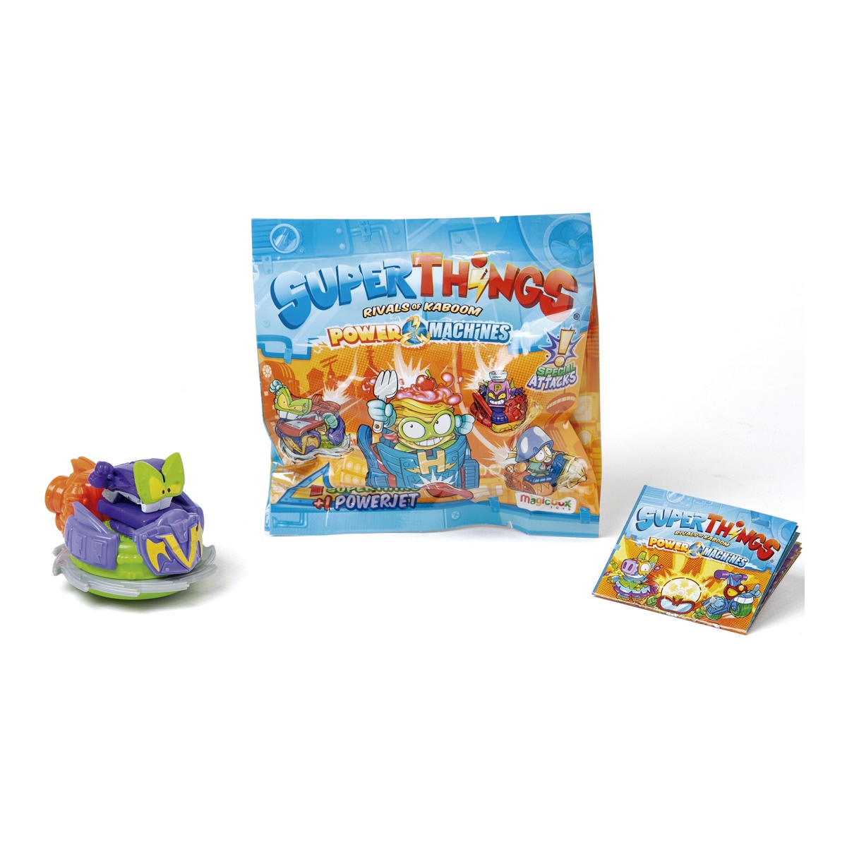 En la serie Power Machines de los SuperThings, ¡hay nuevos vehículos para coleccionar! Spark Drill, con su turbina se abre paso ante cualquier situación; Firey Wings ataca con su bola de fuego; Motor Puncher mueve su puño y derriba cualquier cosa; y Shinobi Saw, todo un peligro con su sierra motorizada. Héroes y villanos tienen nuevos vehículos… ¡y no temen utilizarlos para ganar la batalla!.