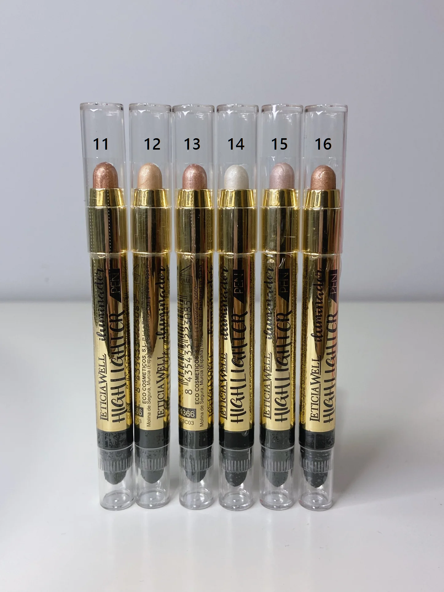 Iluminador en lápiz para llegar a zonas más pequeñas como el lagrimal. Contiene en su otro extremo una esponja para poder difuminar.