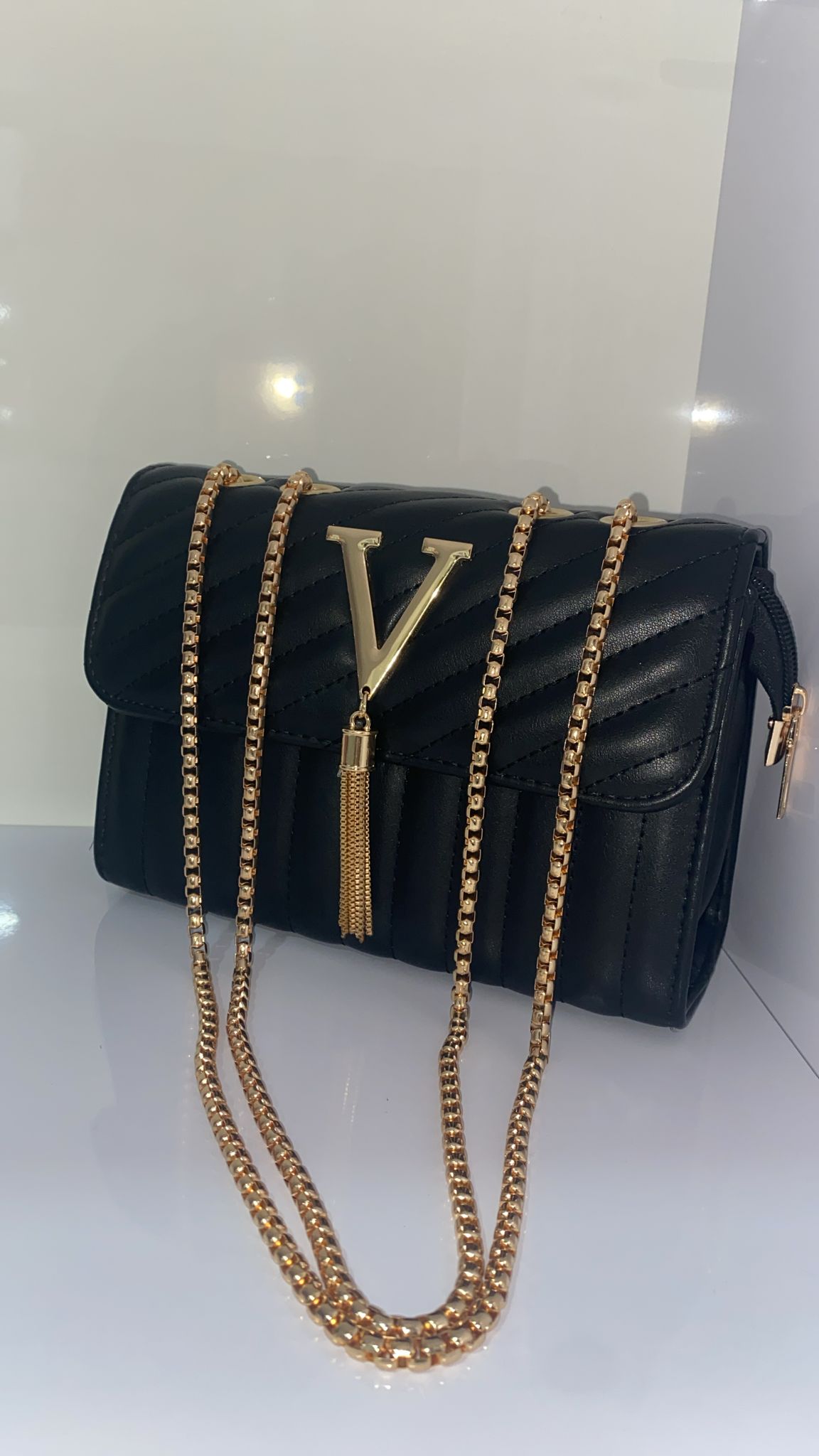 Bolso de fiesta elegante negro con cadenas doradas para mujer
