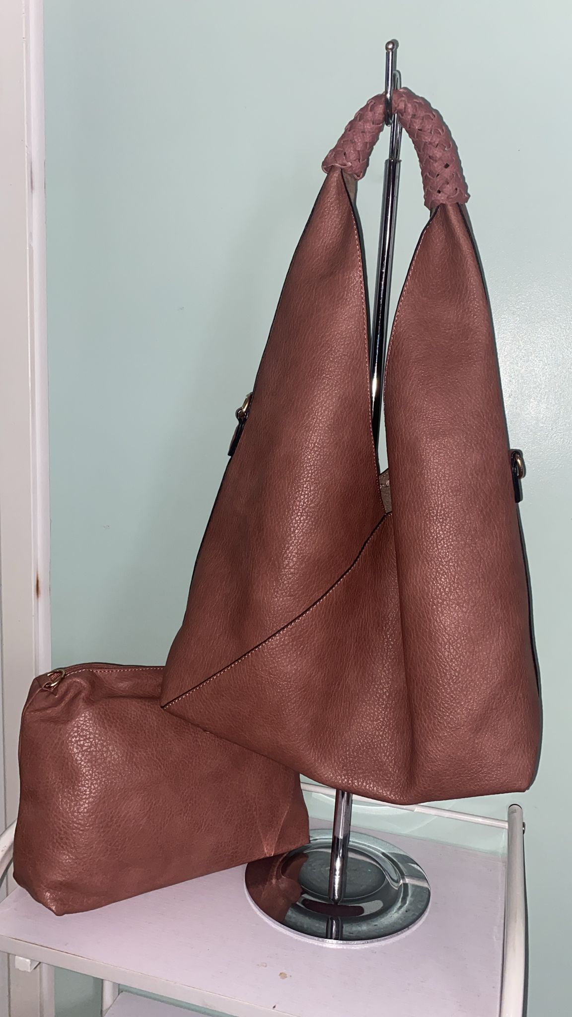 Bolso de piel grande para mujer con neceser incluido – Color rosa palo – Bolsos para mujeres